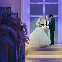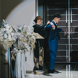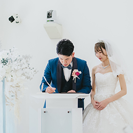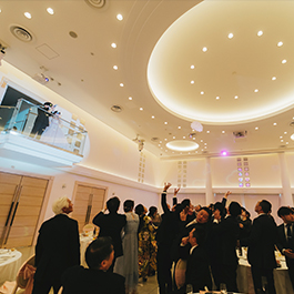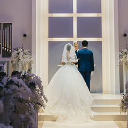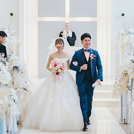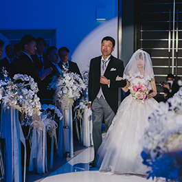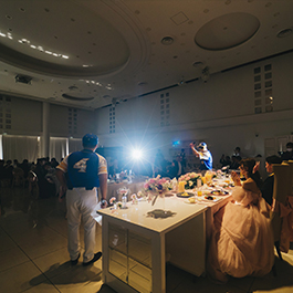 キャンバスのような白亜な会場。 真っ白なキャンバスにお二人のカラーで、 オリジナルコーディネートをお楽しみ頂けます。