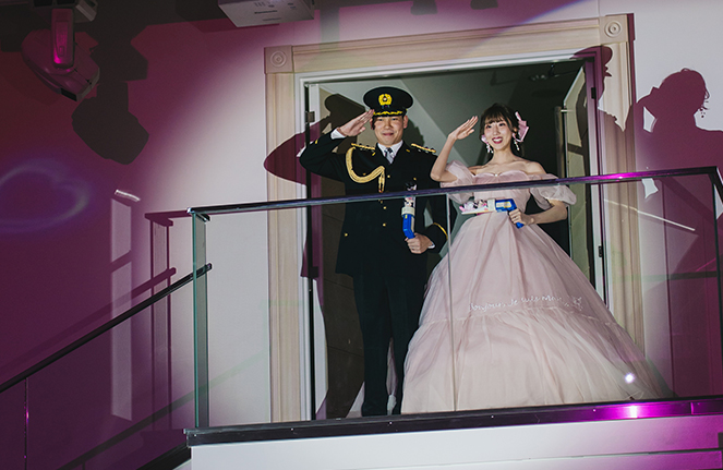 絶対に着たかったカラードレスをまとってポーズを決め、ミニバズーカーを撃ちながらの登場は自分たちらしい楽しさ、かわいらしさが詰まった思い出に残る演出だったと思います。