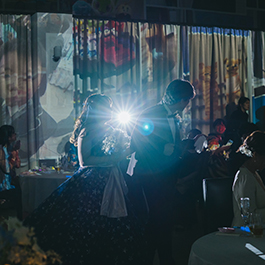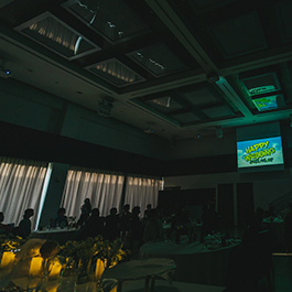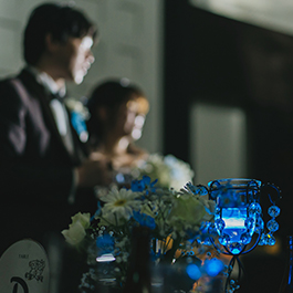会場内では特殊演出でアクアイリュージョンも行いました。幻想的な演出かつ、ゆっくり全卓に挨拶を行えたのでお勧めです!