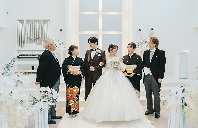 挙式の進行のリハーサルは一度きりだったので、とても緊張しましたが、牧師さんが所々指示を出してくれて助かりました。笑いあり涙ありの一生思い出に残る挙式ができました。